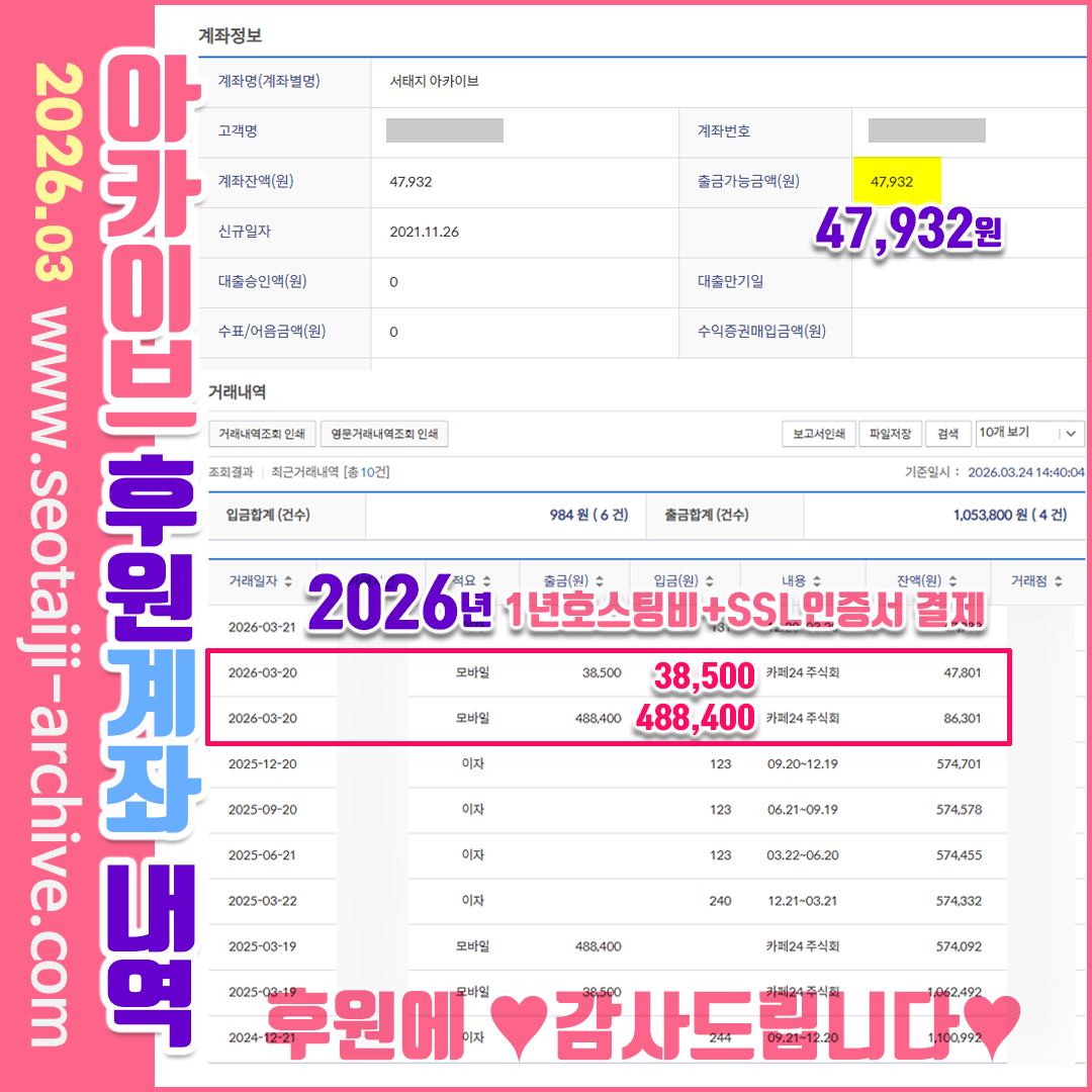 SSL : 38,500(1/2026.03.24~2027.03.23)